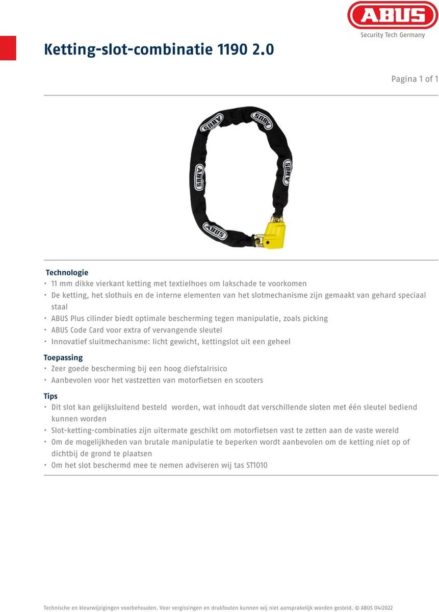ABUS Ionus 1190/11 Kettingslot ART4 – 120 Cm