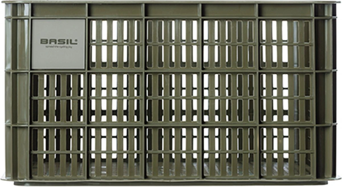 De Basil fietskrat in de maat L is een groene fietskrat voor op een dames- of herenfiets. De fietskrat is gemaakt van duurzaam materiaal en heeft een inhoud van 40 liter.