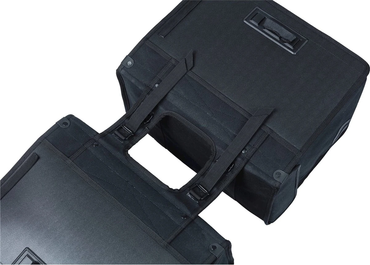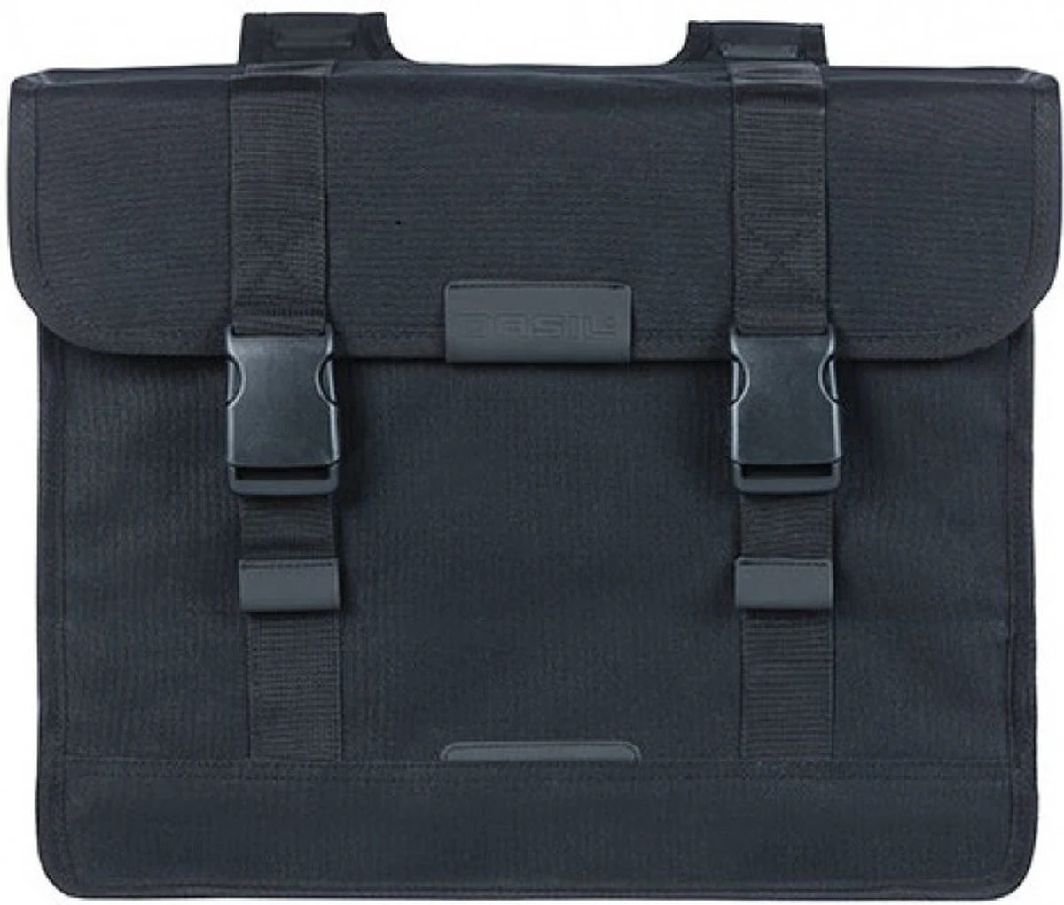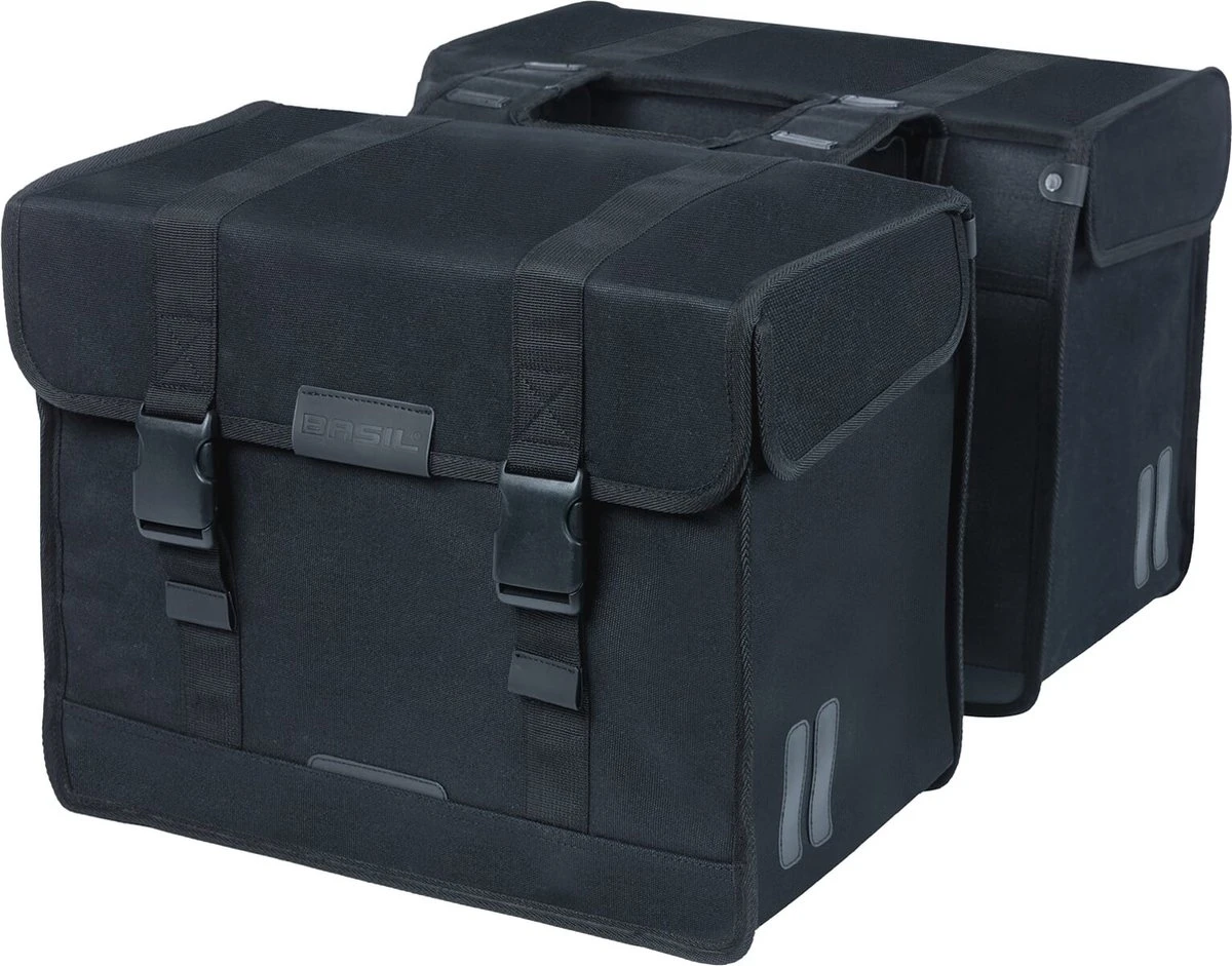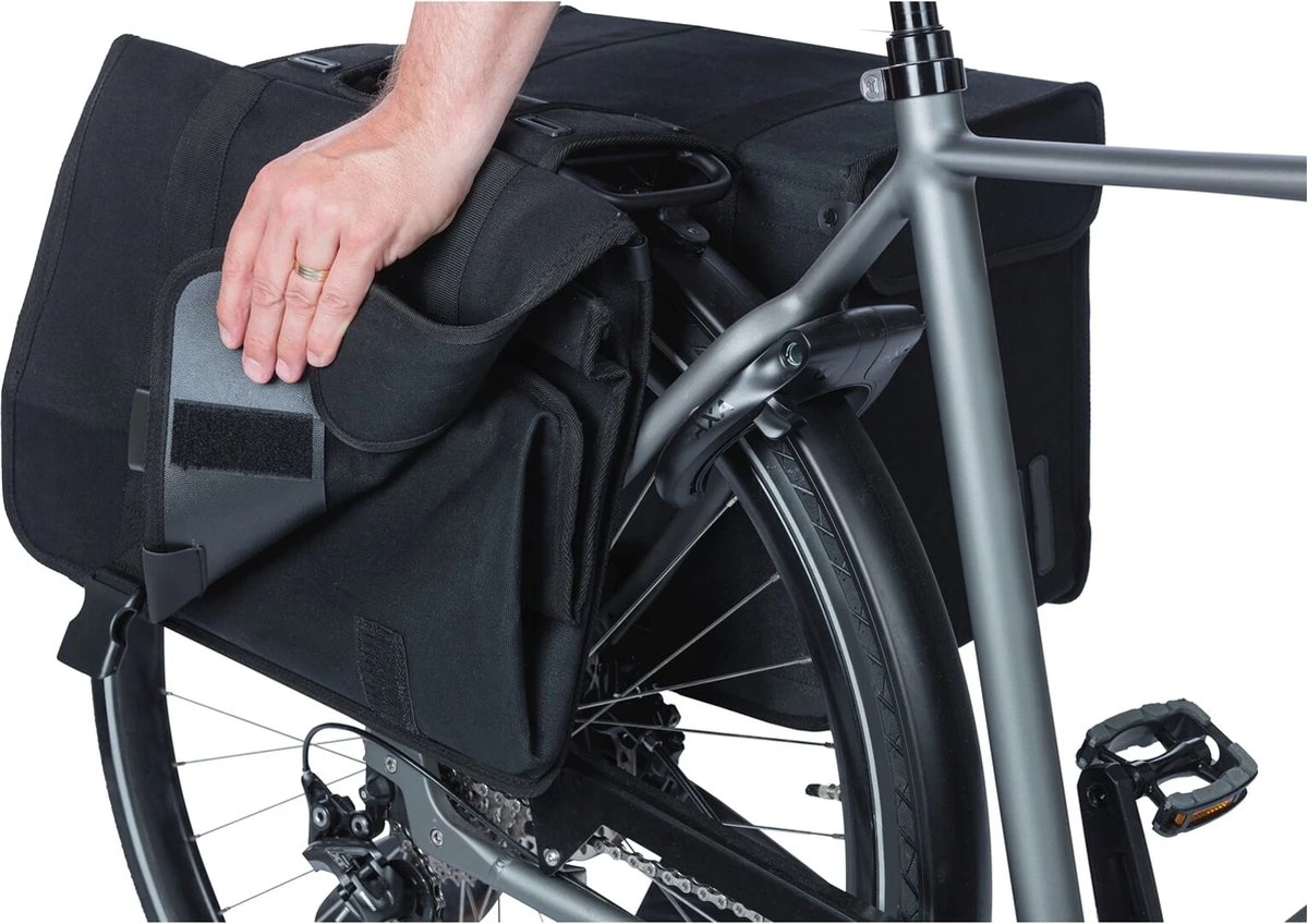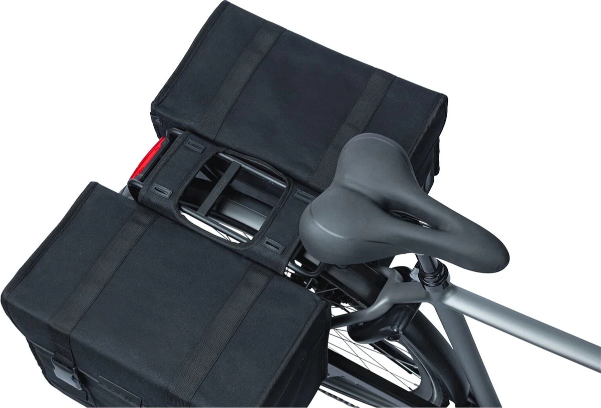 De Basil Kavan Eco Classic is een ruime dubbele fietstas in het zwart. De duurzame fietstassen passen goed achterop een dames- of herenfiets.