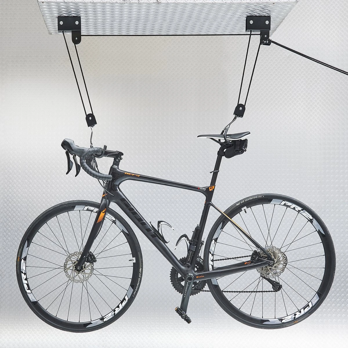 Als je je fiets even niet gebruikt, in de winter bijvoorbeeld, is het fijn als je hem ergens kwijt kan. Als je je wielrenfiets, mountainbike, of gewoon je normale fiets wil stallen dan is het natuurlijk ontzettend handig als je hem gewoon in je garage, werkplaats of schuur kunt ophangen! Met dit touw- en katrolsysteem heb je een ideaal opbergsysteem in huis (of in je professionele werkplaats) voor het stallen van je fiets, mtb of wielrenfiets. De lift is zeer eenvoudig en snel te monteren.