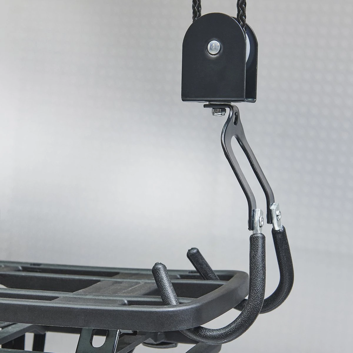 Je fiets hangt contactvrij van de grond, waardoor je op de vloer nog heel veel ruimte over houdt. Ook is deze fietslift extra zwaar, waardoor je niet alleen je racefiets of elektrische fiets op kunt hangen, maar ook een zwaarder voorwerp zoals een kano, kajak, snowboard, ski’s of zelfs een boot! Door het beschermrubber aan de haken raakt je fiets of ander voorwerp ook niet beschadigd. Dit ophangsysteem zorgt voor stabiliteit en is geschikt voor voorwerpen tot wel 50 kg!