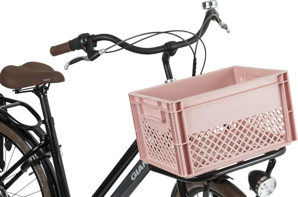 Een fietskrat is een praktische totaaloplossing en biedt een hoop gemak. Deze fietskrat is zowel geschikt als voordrager als als achterdrager. Hij heeft handvatten en is gemaakt van kunststof. De krat is erg geschikt voor kinderfietsen. Bevestig de krat op een kinderfiets en heeft ruimte voor 22 liter aan spullen.