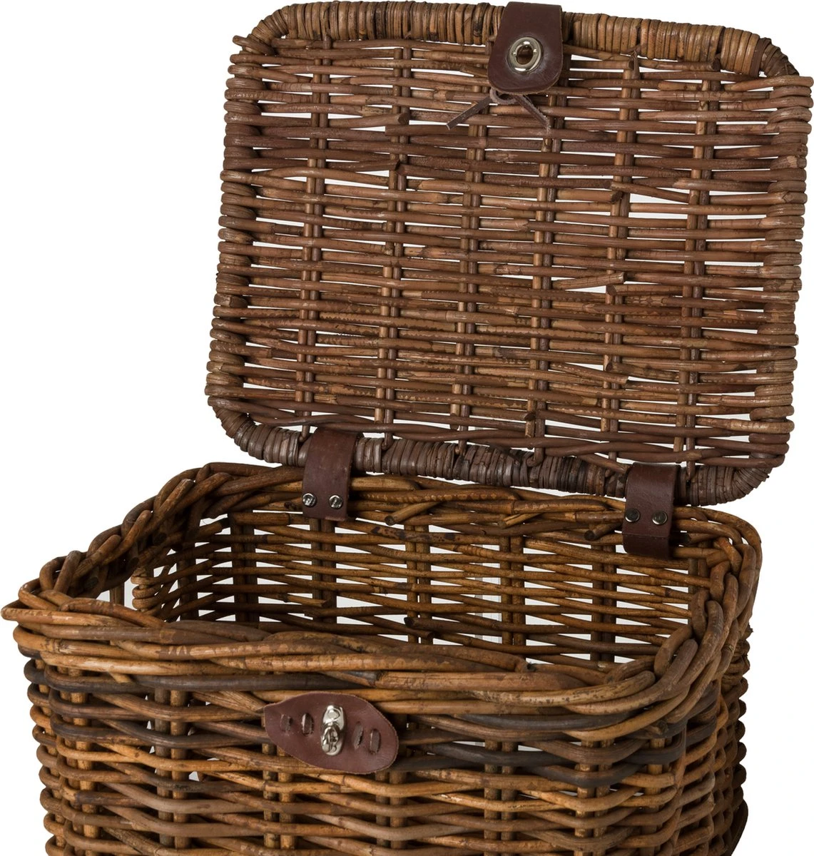 Onze handgemaakte Fastrider Sera Rotan Fietsmand met klep, met zijn stevige handvatten en weefpatroon, geeft je fiets een robuuste natuurlijke uitstraling en biedt uiteraard genoeg draagruimte voor je boodschappen of andere bagage. Hij is gemakkelijk op je voordrager te bevestigen door middel van de 4 meegeleverde tyraps.