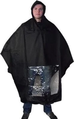 Poncho Regenponcho – Fietsponcho Fiets – Koplampproof Transparant – One Size – Unisex Zwart