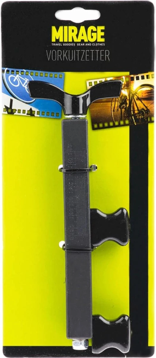 Deze vorkuitzetter maakt het verwisselen van een band eenvoudiger. De kunststof behuizing voorkomt schade aan frame.