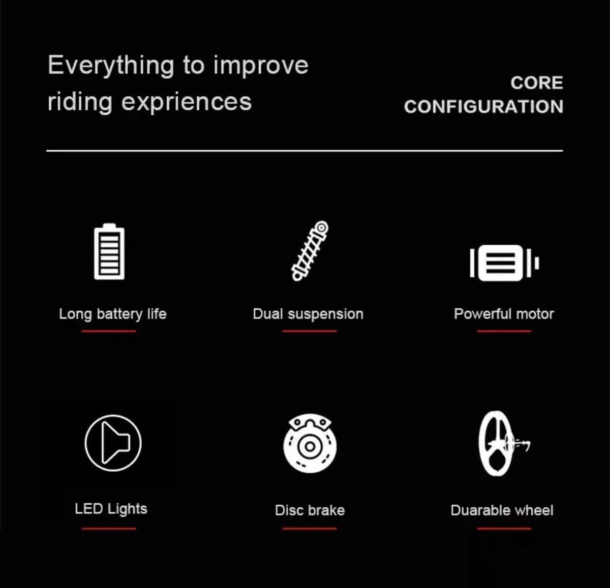 - Hoogglanzende LED-koplampen en remlichten met een hoge helderheid aan de achterzijde maken rijden ‘s nachts veiliger.