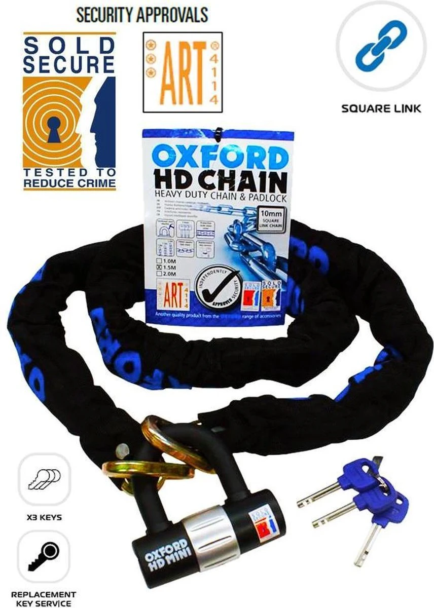 - Zeer sterk en bekend kettingslot van de sloten-ontwerpers van Oxford