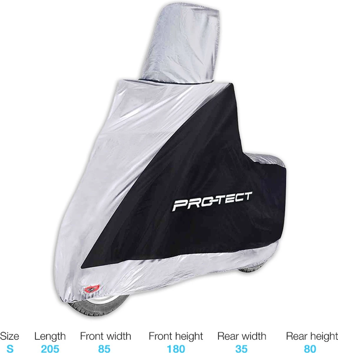 Deze motorhoes van PRO-TECT in maat S is geschikt voor scooters, motor scooters en kleine motoren met een windscherm. De beschermhoes bevat een verstelbare band en 2 slotengaten, verpakt in een nette stevige draagtas. De hoes is erg sterk door het duurzame dubbel gestikte nylon, wat tevens hittebestendig is tot 150°C. Deze motorhoes van PRO-TECT in maat S is geschikt voor scooters, motor scooters en kleine motoren met een windscherm. De beschermhoes bevat een verstelbare band en 2 slotengaten, verpakt in een nette stevige draagtas. De hoes is erg sterk door het duurzame dubbel gestikte nylon, wat tevens hittebestendig is tot 150°C.
