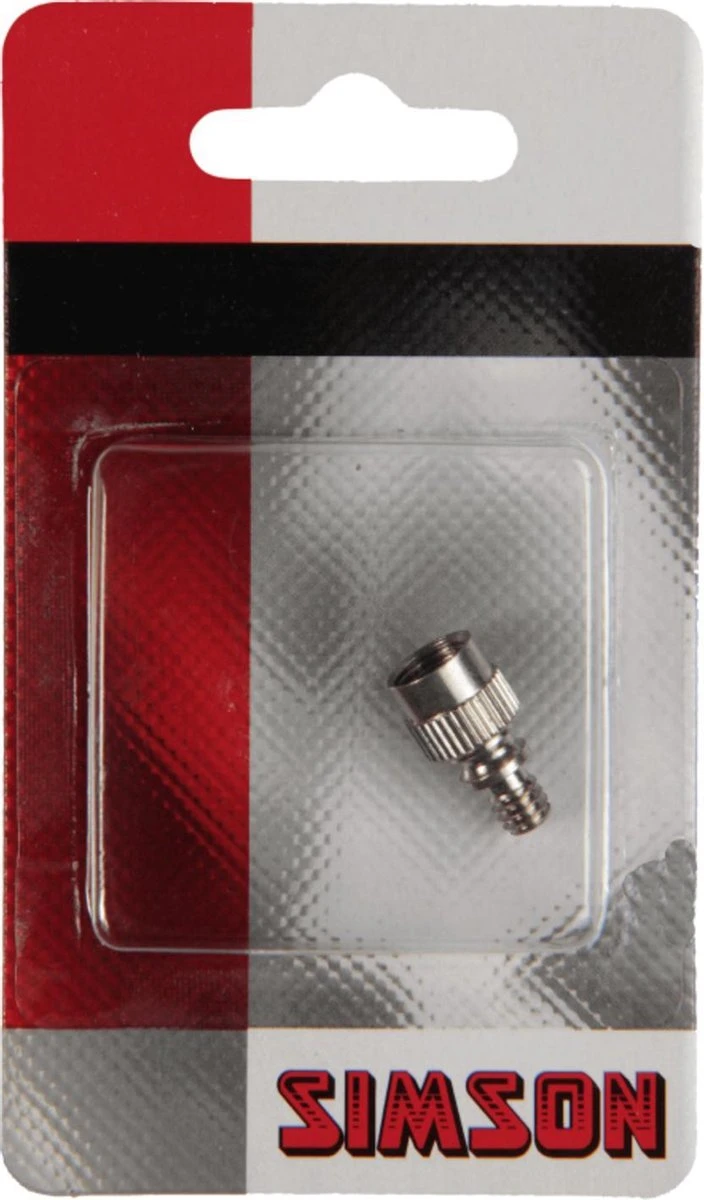 Met de Simson Pompnippel ATB kan een band met een ATB ventiel (autoventiel) opgepompt worden met een gewone fietspomp. De Simson Pompnippel is gemaakt van aluminium voor een optimale levensduur. Draai de Simson pompnippel op het ATB ventiel waarna de band opgepompt kan worden met een gewone fietspomp. Verwijder na het oppompen de pompnippel van het ventiel. De Simson Pompnippel ATB wordt geleverd per stuk.