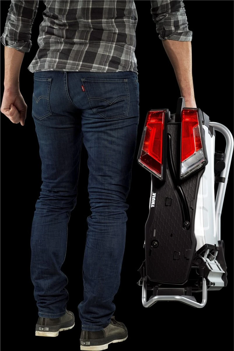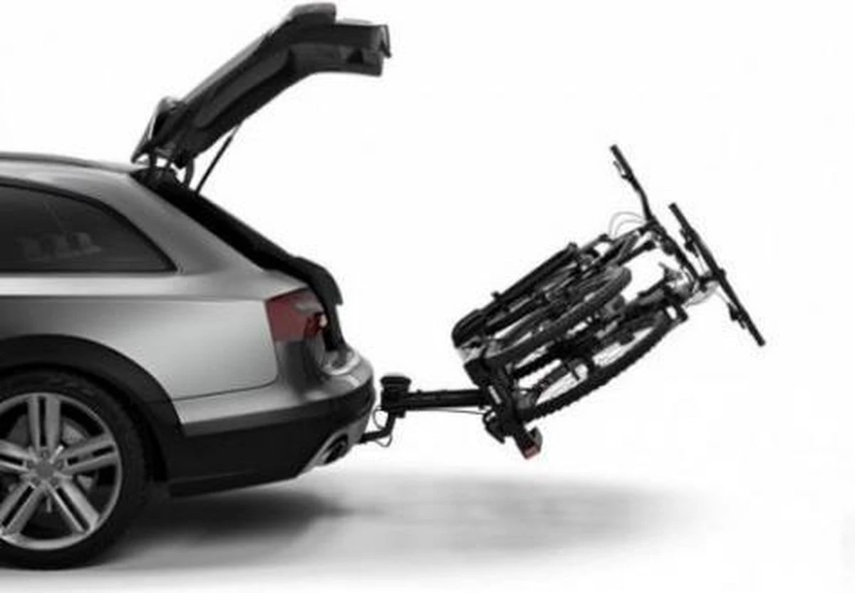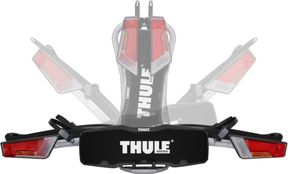 Je vouwt hem compact op, waadoor de fietsdrager zeer makkelijk mee te nemen en op te bergen is. Een klein plaatsje in de berging of hal is voldoende. Meenemen in caravan? Dat past gemakkelijk!. De Thule EasyFold 931 is natuurlijk kantelbaar door middel van eenvoetpedaal waardoor de kofferbak makkelijk toegankelijk blijft. ook als de fietsen als zijn gemonteerd op de drager. Is de fietsdrager op de trekhaak gemonteerd dan is deze af te sluiten, ook de fieten kunnen in elke positie worden vergrendeld aan de drager. Deze compacte en gebruiksvriendelijke fietsdrager van Thule wordt geleverd inclusief sloten voor extra beveiliging.