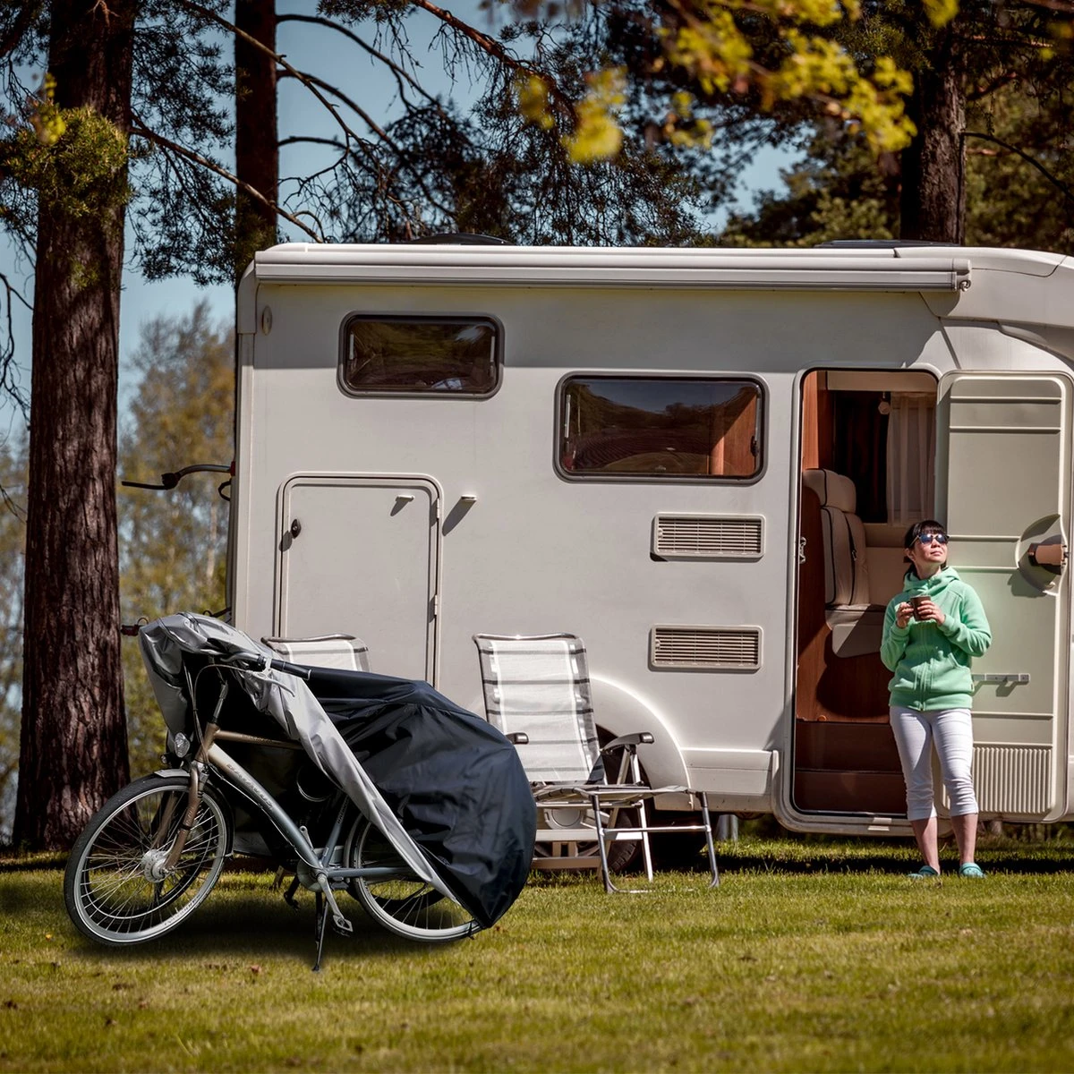 ✓ Anti-diefstal – Met deze fietshoes zorg je ervoor dat je dure (elektrische) fiets uit het zicht blijft. Bovendien kun je je fiets inclusief fietshoes vast zetten met een slot door het ringslot oog.