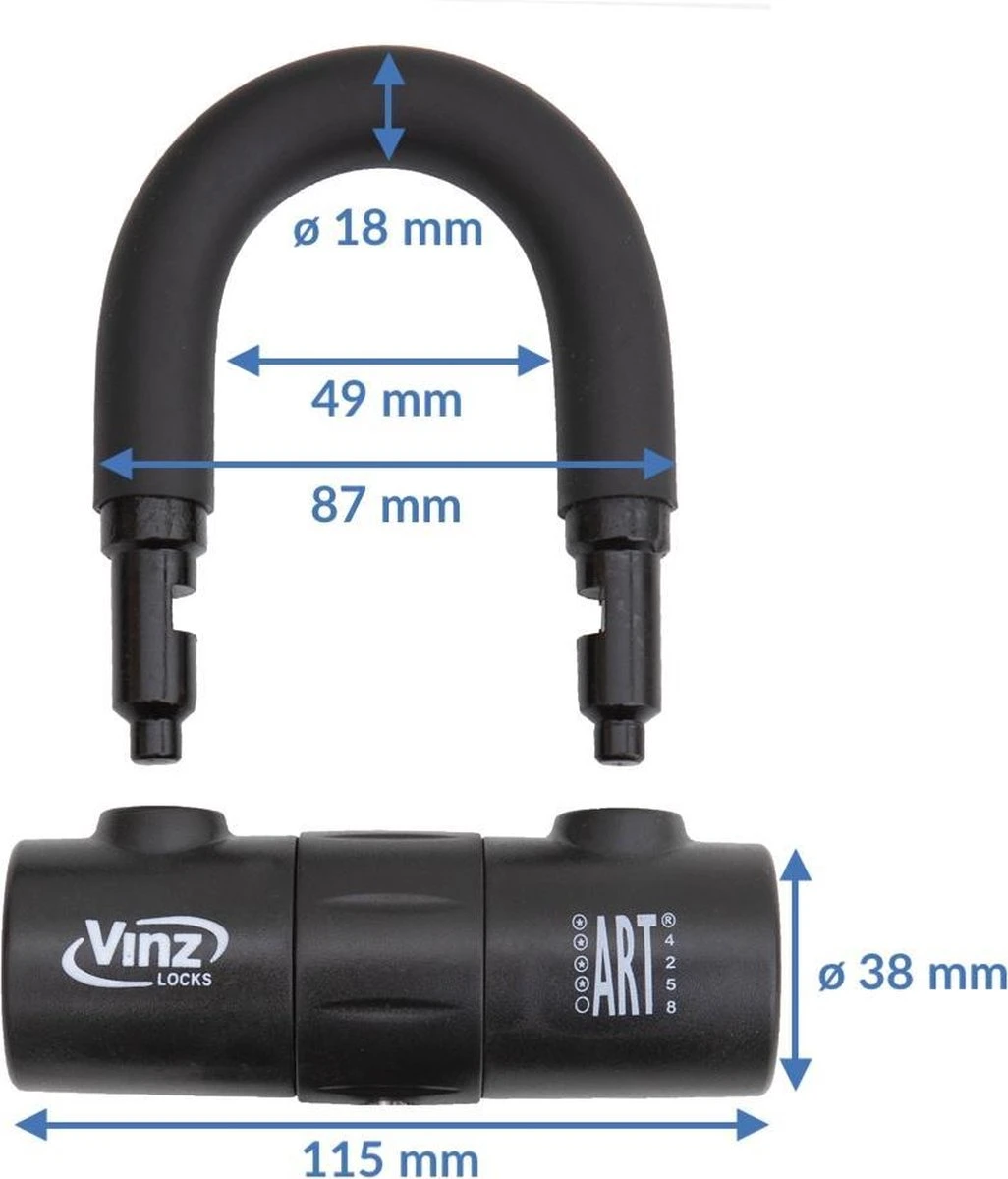 | Verpakkingsinhoud | VINZ Dinara Schijfremslot / Motorslot / Scooterslot ART4 – Zwart |